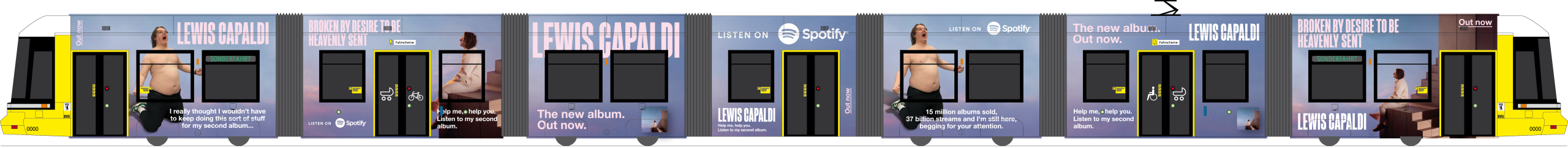 As part of various album and single releases, eye-catching promotional campaigns were brought to life – including the design of a full tram in Berlin. The tram became a moving stage, traveling through the city and bringing the music directly into urban life. Artists who were showcased in this way include international stars such as The Beatles, Lewis Capaldi, and Zoe Wees, as well as German icons like Silbermond and Samy Deluxe. By creatively combining music with public space, the project created a unique visual highlight that significantly increased reach and visibility while powerfully conveying the artists’ message.